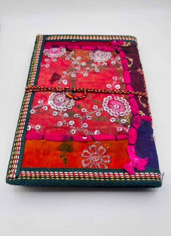 Dit prachtige notitieboekje is eerlijk en met de hand gemaakt door kleine gemeenschappen in Noordwest-India. Het notitieboekje is gemaakt van restanten uit de textielindustrie en handgeschept papier (wit/blanco, 50 pagina's). Perfect als cadeautje voor jezelf of iemand anders! Het formaat van dit boekje zit tussen A6 en A5 in.