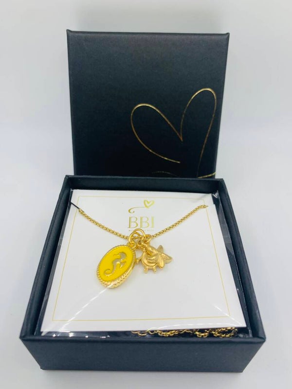 Dit vrolijke kettinkje past perfect bij een zomerse outfit. De ketting zelf is gemaakt van stainless steel, de hangertjes zijn gemaakt van verschillende materialen. het kettinkje is ca. 47 cm lang, inclusief verlengkettinkje van 6 cm. Deze ketting wordt geleverd in een luxe cadeaudoosje, wat dit tot een perfect cadeautje maakt voor jezelf of iemand anders!