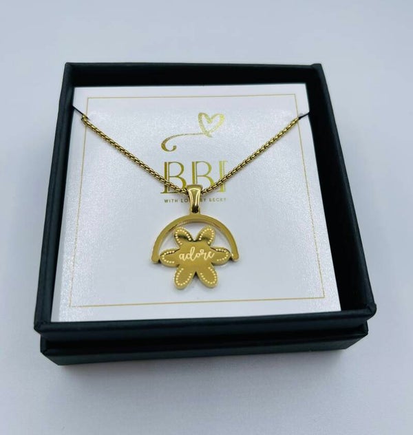 Deze prachtige ketting is in zijn geheel gemaakt van stainless steel. Dit betekent dat deze ketting niet verkleurt, geen vlekken afgeeft en bovendien zelden zorgen voor huidirritatie. Zo heb je hier lekker lang plezier van! Je ontvangt deze ketting met luxe cadeaudoosje. Zo kies je hiermee voor een extra mooi cadeautje voor jezelf of iemand anders! De ketting heeft een lengte van ca. 47cm, inclusief verlengketting van 6 cm. De hanger van deze ketting is omkeerbaar. Aan de ene kant is deze uitgevoerd in de vorm van een bloem en aan de andere kant is deze voorzien van de inscriptie 'Adore'