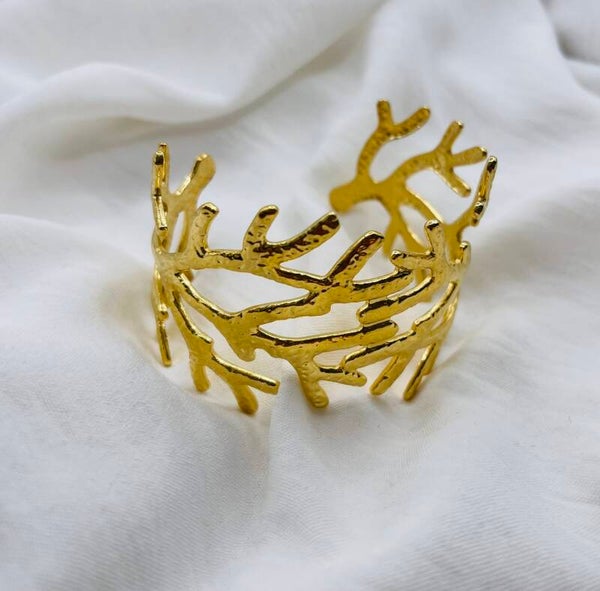 Deze prachtige statement armband in de vorm van koraal gemaakt van stainless steel en is een echte eyecatcher om de pols. Doordat de armband van stainless steel is gemaakt blijft deze lang mooi en geeft deze geen vlekken af.