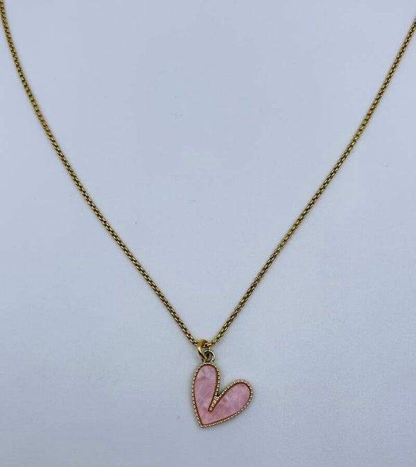 Deze vrolijke zomerse ketting maakt jouw outfit compleet. De hanger is een roze hartje. De ketting is 47cm lang en voorzien van een verlengketting van 6cm.