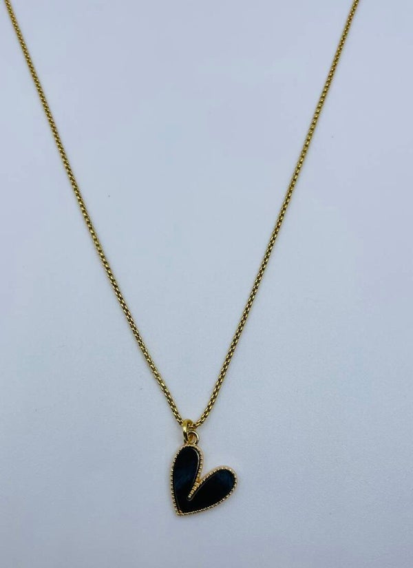 Deze vrolijke zomerse ketting maakt jouw outfit compleet. De hanger is een zwart hartje. De ketting is 47cm lang en voorzien van een verlengketting van 6cm.