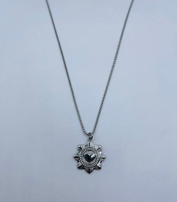 Deze mooie ketting maakt jouw outfit compleet en is in zijn geheel gemaakt van stainless steel. De hanger heeft de vorm van een bloem met hartj. De ketting is 47cm lang en voorzien van een verlengketting van 6cm. De ketting wordt geleverd in een luxe cadeaudoosje.