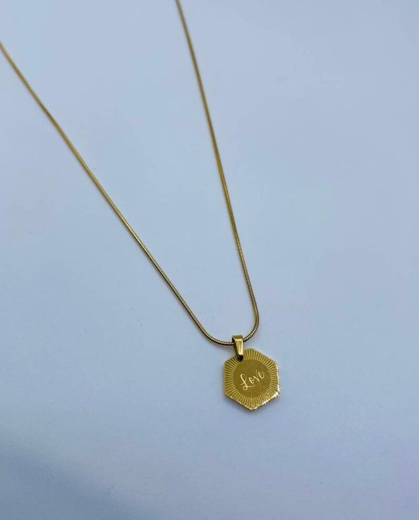 Deze mooie ketting maakt jouw outfit compleet en is in zijn geheel gemaakt van stainless steel. De ketting is voorzien van een sprekende hanger met inscriptie 'love'. De ketting is 47cm lang en voorzien van een verlengketting van 6cm. De ketting wordt geleverd in een luxe cadeaudoosje.