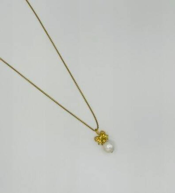 Deze vrolijke zomerse ketting maakt jouw outfit compleet. De hanger is een combinatie van een strik van stainless steel en een zoetwaterparel. De ketting is 47cm lang en voorzien van een verlengketting van 6cm. Dit model is in zijn geheel gemaakt van stainless steel en wordt geleverd in een luxe cadeaudoosje.