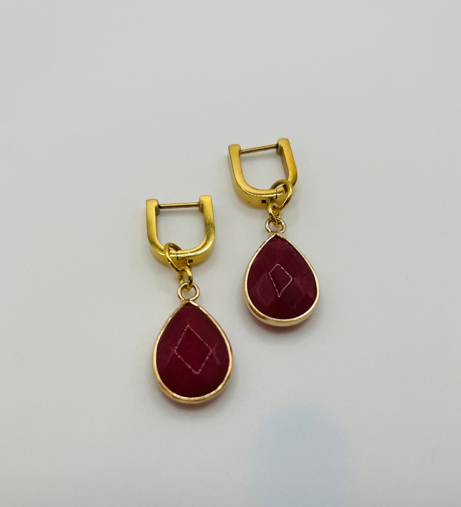 Deze mooie oorbellen zijn voorzien van ringetjes van stainless steel. Dit verkleurt niet en zorgt niet vaak voor irritatie. De hanger is gemaakt van fraai gekleurd natuursteen. Let op, het gouden randje om de hanger kan wel verkleuren, dus bewaar deze oorbellen niet op een vochtige plek om ze mooi te houden!