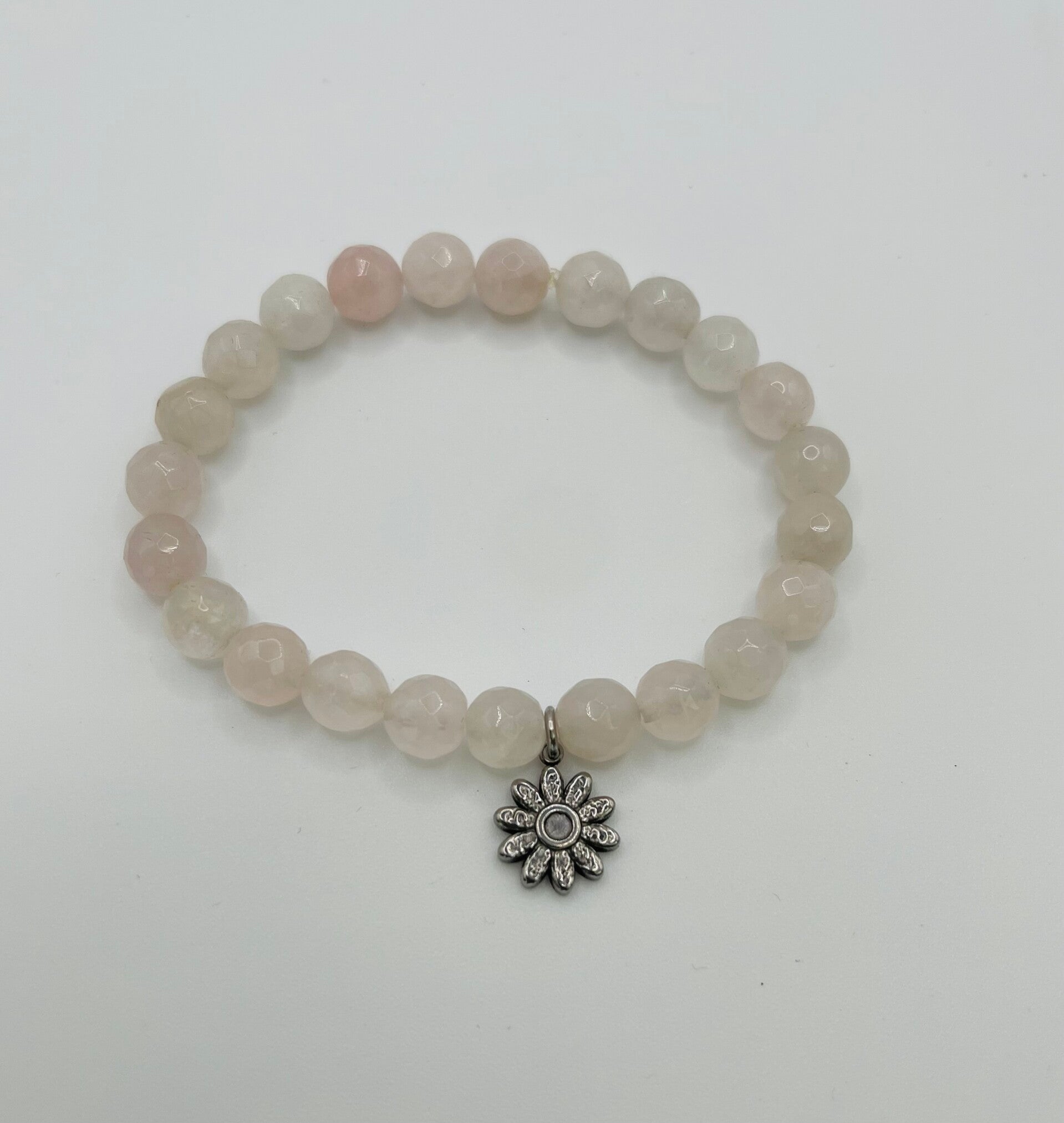 Deze prachtige armband van natuursteen is gemaakt van kralen van Rosekwarts en voorzien van een zilverkleurige bedel. Deze armband is geschikt voor polsmaat 15/15,5cm en heeft een lengte van ca. 17cm.