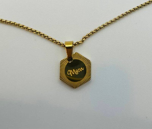 Deze trendy ketting is in zijn geheel gemaakt van stainless steel en blijft dus lang mooi en vlekt niet. De hanger is voorzien van de inscriptie 'Mom'