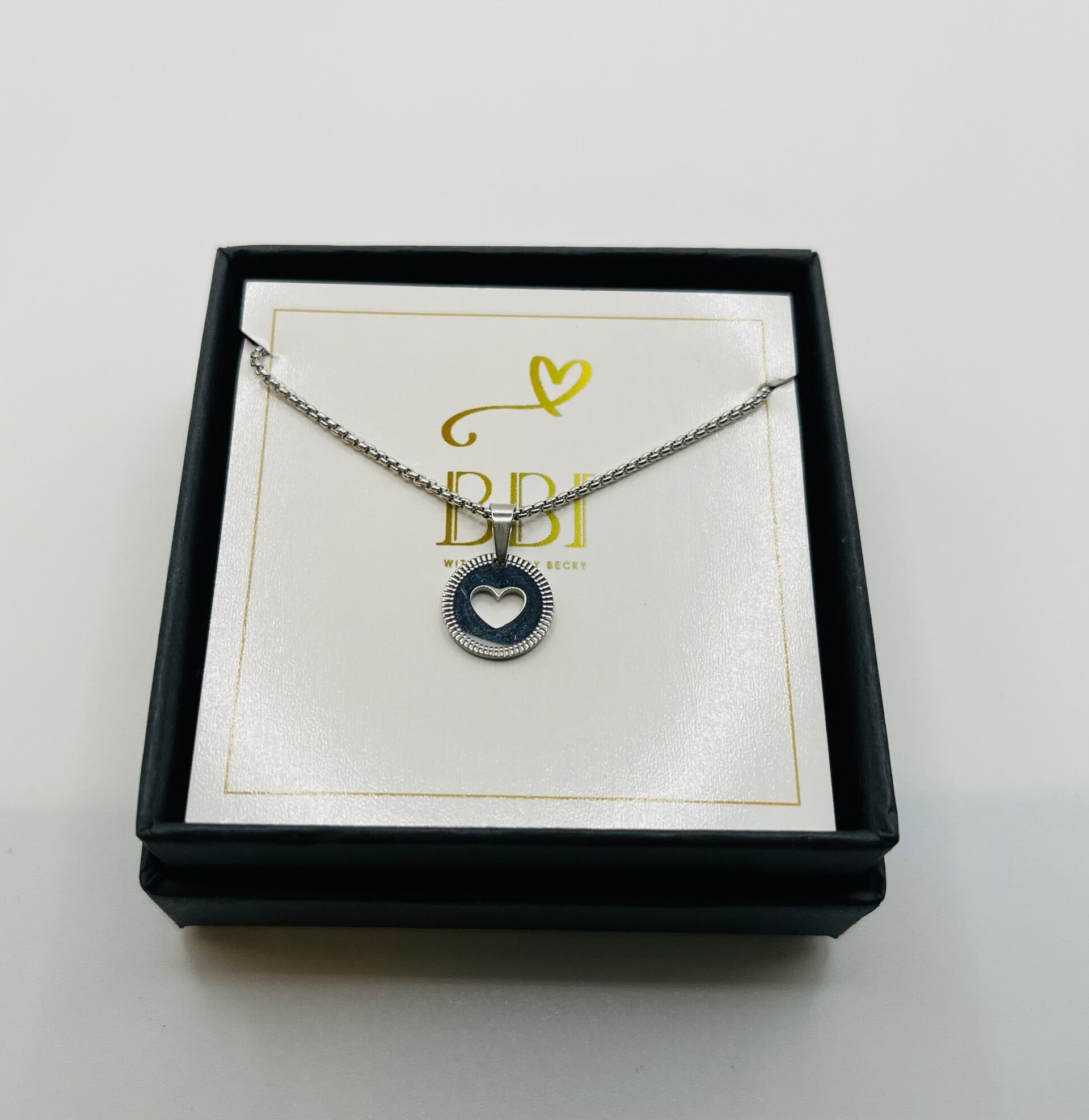 Deze mooie ketting maakt jouw outfit compleet en is in zijn geheel gemaakt van stainless steel. De hanger heeft de vorm van een cirkel met hartje. De ketting is 47cm lang en voorzien van een verlengketting van 6cm. De ketting wordt geleverd in een luxe cadeaudoosje.