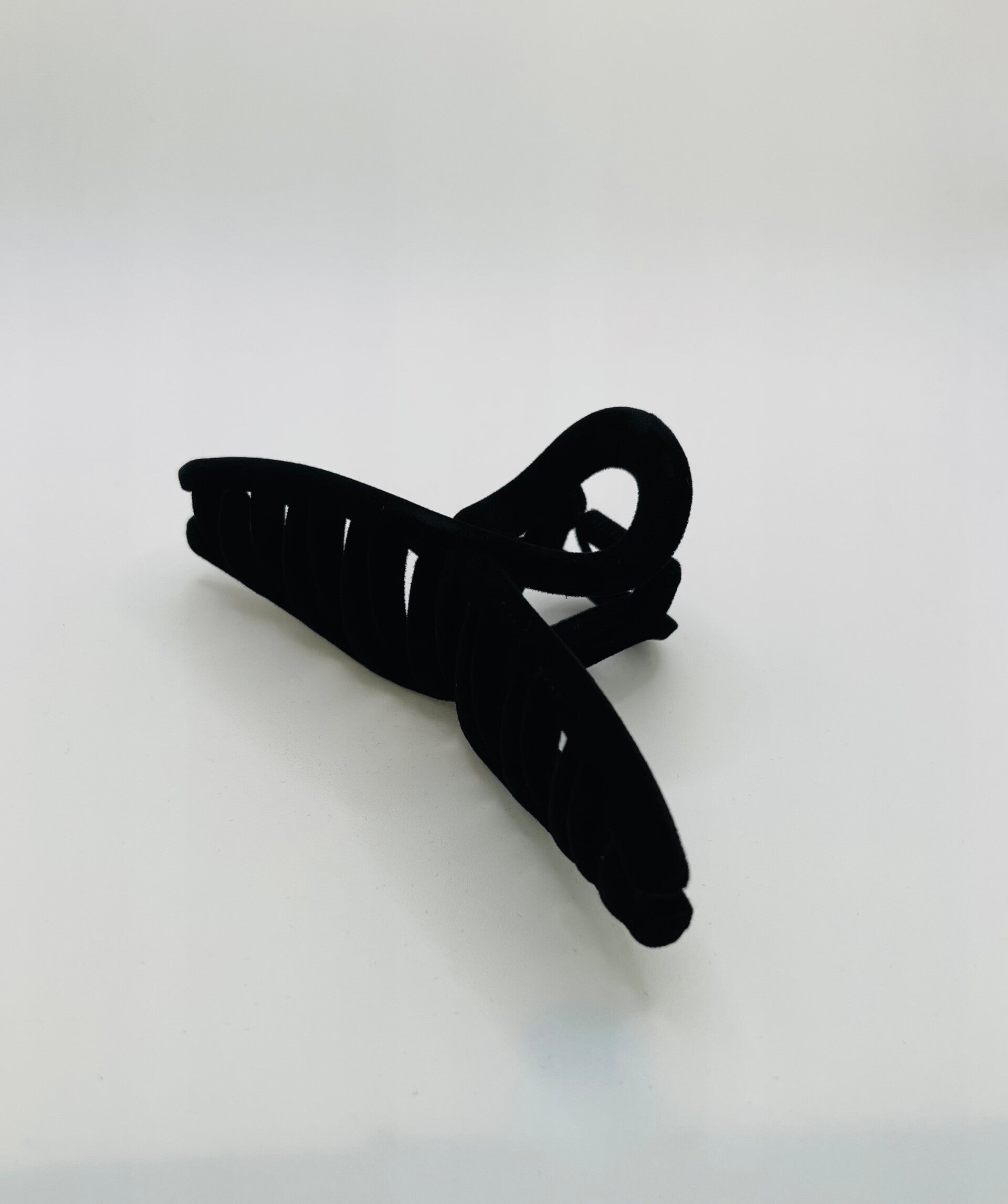 Deze trendy haarklem in de kleur zwart heeft een velours uitstraling en is ongeveer 11 x 5 cm.