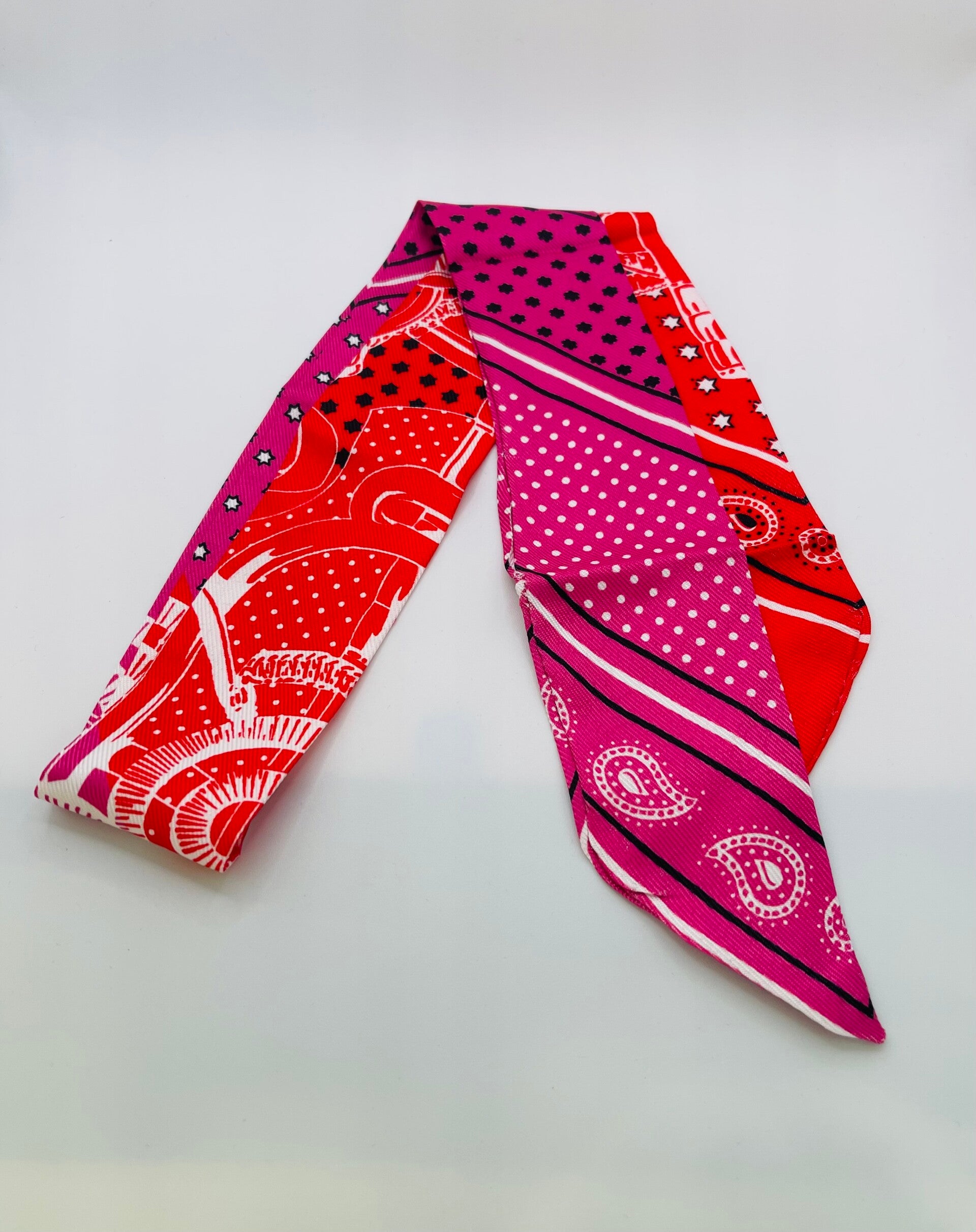 Dit trendy bandana sjaaltje is op heel veel verschillende manieren te dragen. Bind hem bijvoorbeeld in een paardenstaart of om je knot, gebruik hem om je tas, schoenen of laarzen te pimpen, maak je hoed er extra zomers mee, of maak er een unieke armband van! Deze sjaaltjes zijn 90cm x 5 cm en gemaakt van polyester.