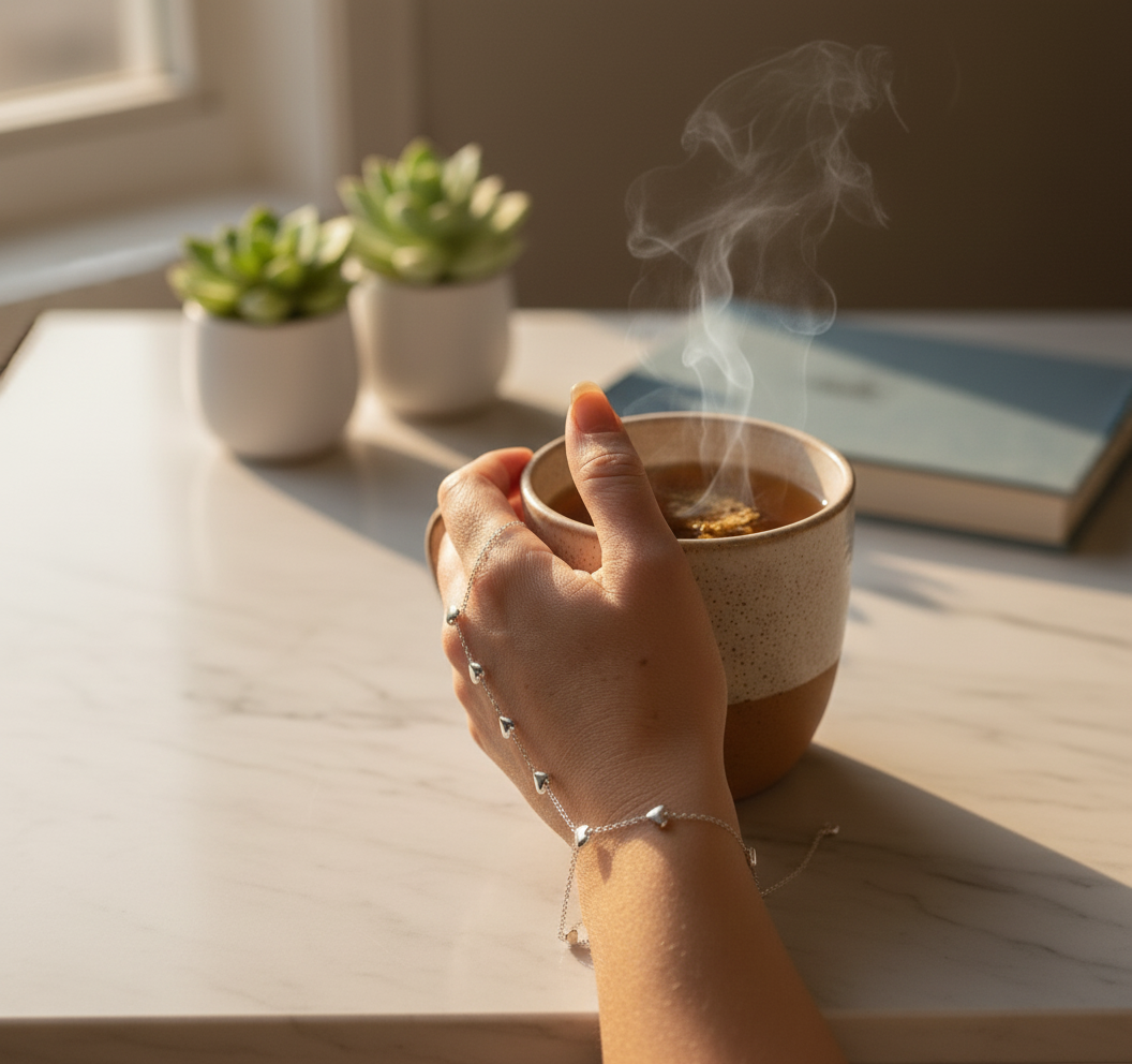 Deze mooie handketting is een echte eyecatcher! De ketting is gemaakt van stainless steel en blijft daarom lang mooi en vlekt niet. De ketting is 21x 13 cm inclusief 3 cm verlengketting.